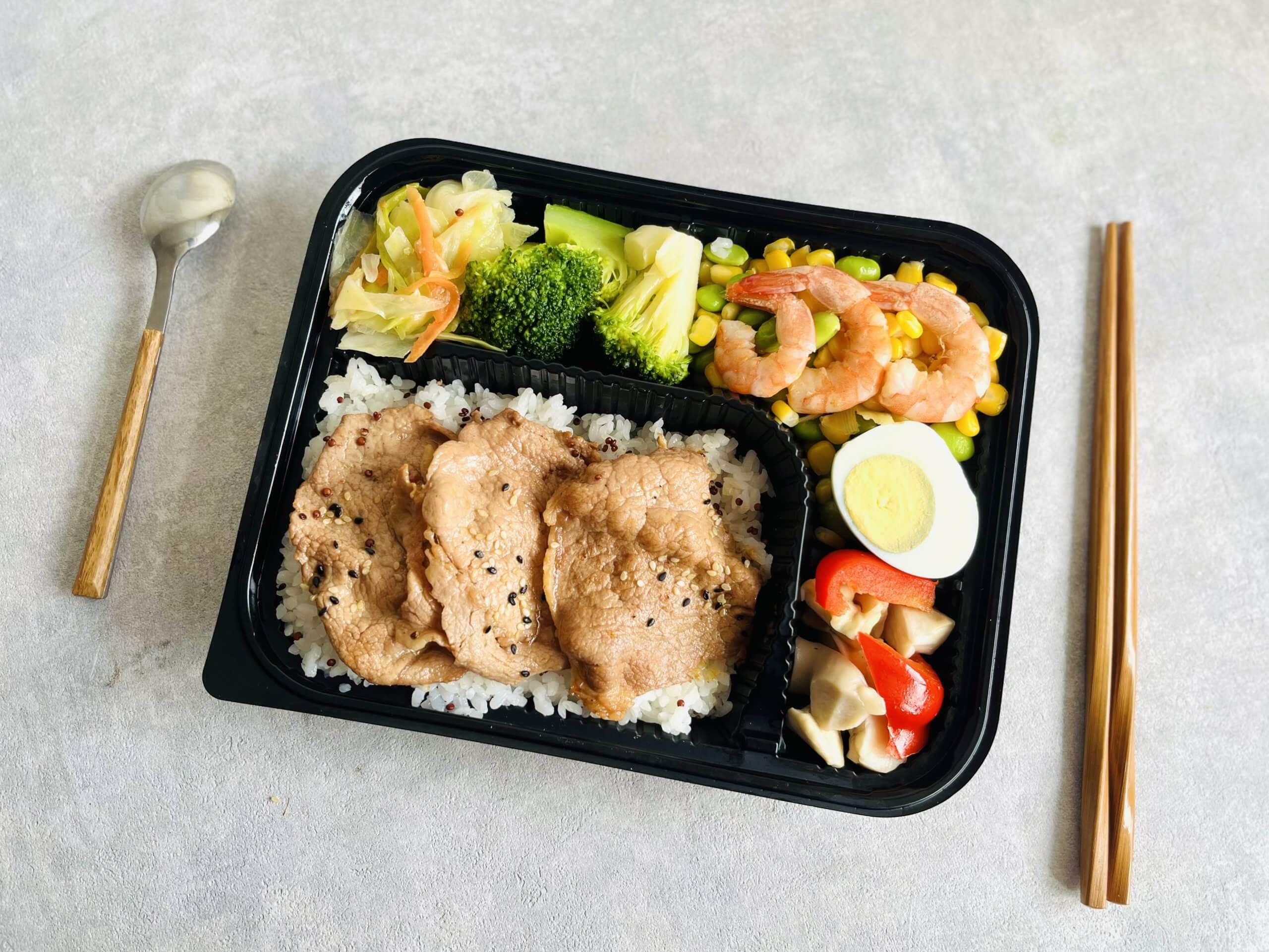 健身控必吃|低GI便當嫩煎里肌 × 白酒鮮蝦雙主食