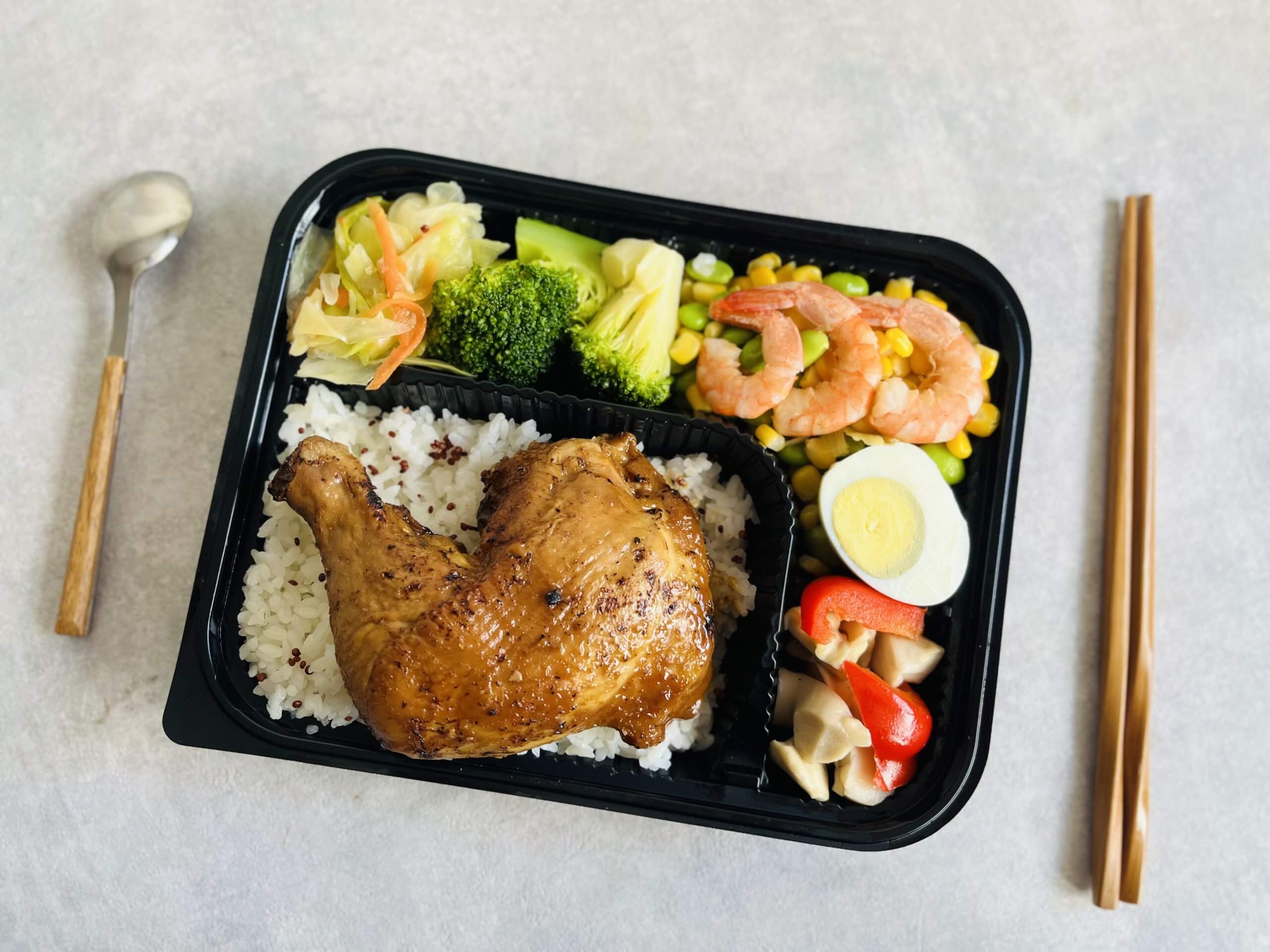 高蛋白健康便當|碳烤雞腿+白酒鮮蝦